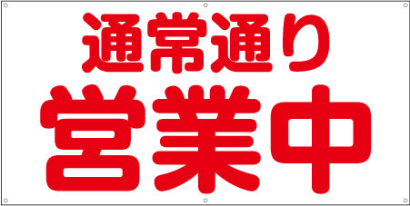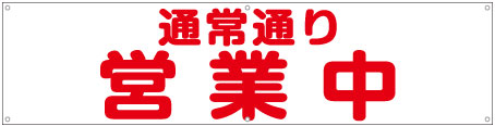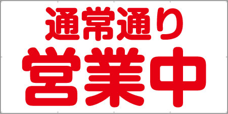 [受注生産]通常通り営業中横幕白背景赤文字ターポリン180cm×90cm TA008-02