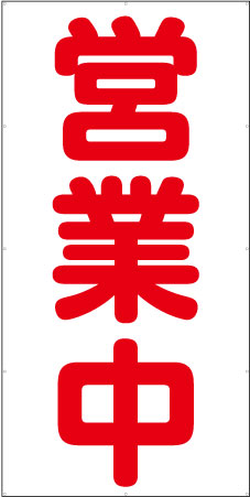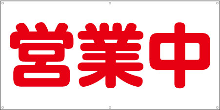 [受注生産]営業中垂れ幕白背景赤文字ターポリン180cm×360cm TA009-03
