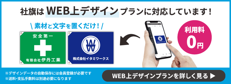 社旗とは、会社や法人団体・組合のシンボルとして、社名やロゴなどがデザインされた旗のことです。会社・団体のアピールや知名度アップ、組織のグループ意識や団結力を高める目的などで使用されます。ポールに掛けて設置するなど、現場用の社旗や安全旗として様々なシーンで活用されています。