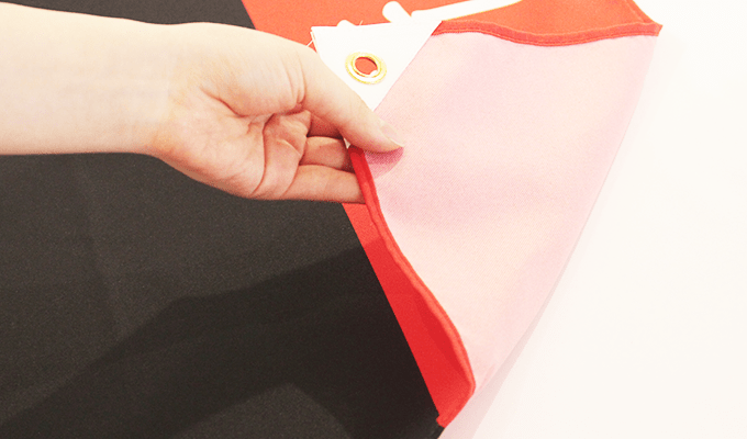三巻縫製によるほつれ防止を行うことで、風がよく吹く場所に設置してもほつれにくく長持ちしやすくなっています。
